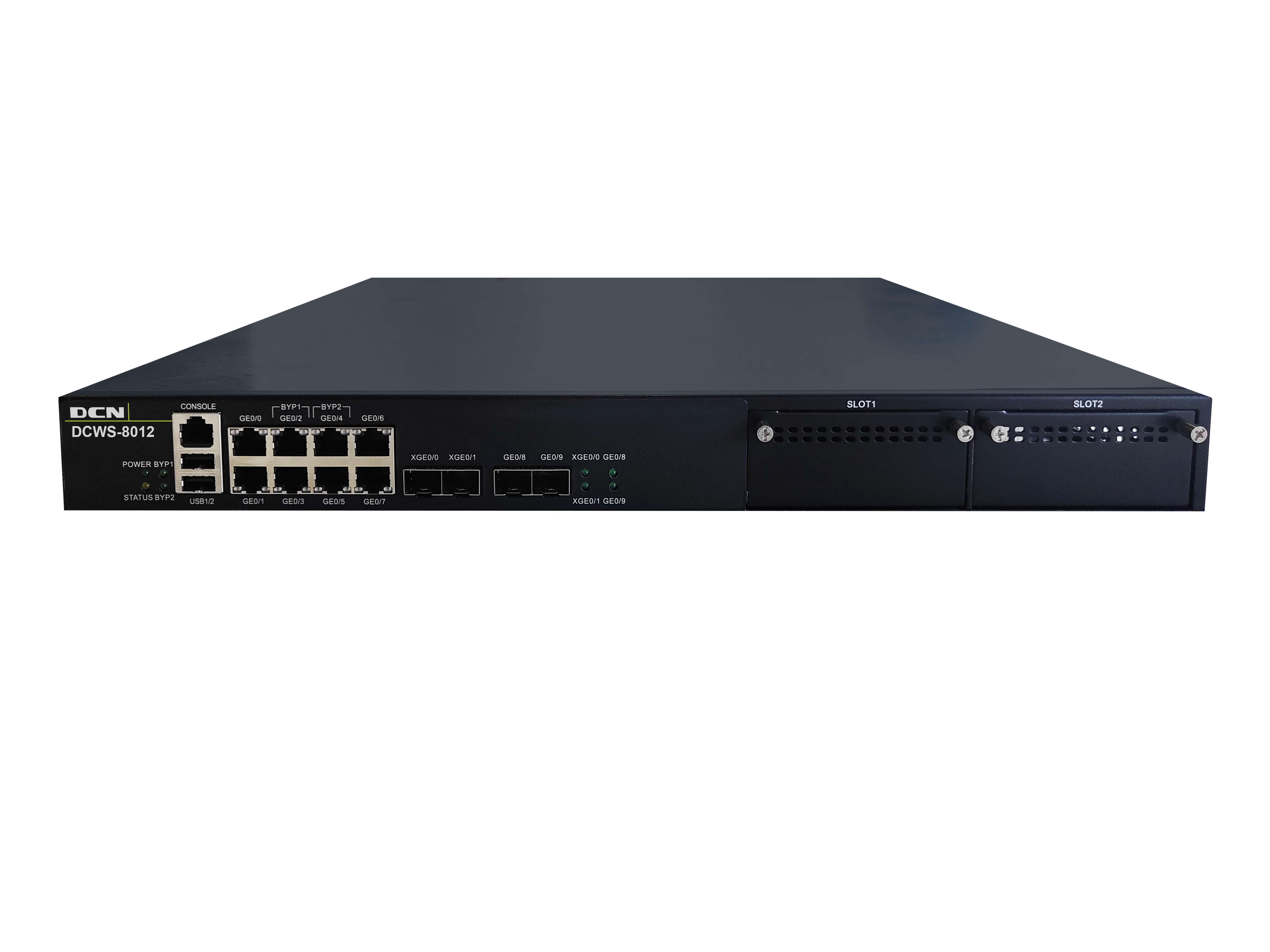 DCWS-8012是新一代盒式高性能万兆智能无线控制器,面向新一代高速无线网络,专为大、中型无线网络环境设计, 配合DCN智能无线AP,组成可集中管理的智能无线局域网。最多可管理2048台无线AP,集精细的用户控制管理、完善的RF管理及安全机制、高性能的路由转发、真正的无缝漫游,与现有网络融合一体的认证机制等多功能于一体,提供强大的WLAN接入控制功能。